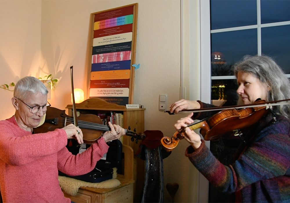 Meine Mutter hat siebzig Jahre kein Klavier gespielt. Aber jetzt, mit neunzig und mit Demenz. Mit Anke Feierabend wieder die ersten Töne seit der Schule. Lisa findet wieder, was sie damals gelernt hat. Und Ihre Hände wissen noch wie´s geht. Sie glaubt es kaum und ist doch so beflügelt von dem, was sie erlebt! Sie vertraut sich wieder. Sie kann das noch. Die Melodien kommen alle wieder, in jeder Stunde mehr. Und wir staunen alle, wie meine Mutter tatsächlich ihr Repertoire noch erweitert und so viel Freude und nachhaltige Lebensqualität gewinnt durch die Musik, die so lange im Inneren geschlummert hat.