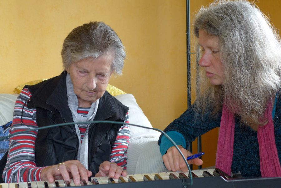Während die Alzheimer-Erkrankung langsam weiter voranschritt und es somit kognitiv wie auch körperlich stetig bergab ging, zeigte Marita im Unterricht eine gegenläufige Entwicklung. Auch nachdem Marita die Pflegestufe 3 (heute Pflegegrad 5) erhalten hatte, führten wir den Unterricht noch weitere drei Jahre fort. Bis zuletzt konnten wir unser Repertoire erweitern. Es wuchs stetig und umfasste am Ende rund 120 Lieder und Stücke.